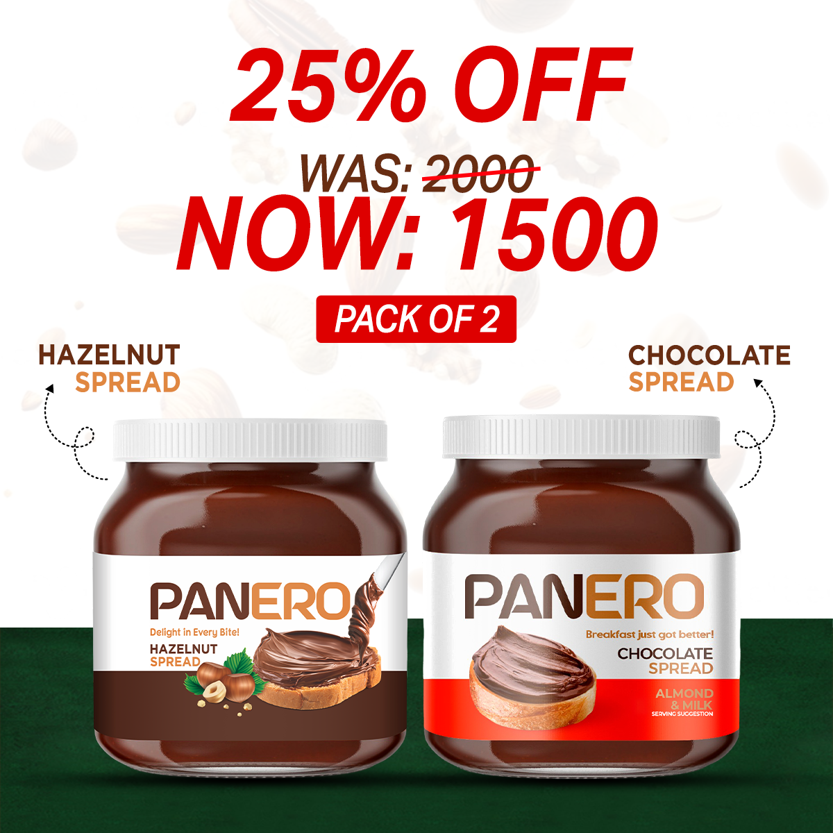Get Zia Panero Hazelnut Spread + Chocolate Spread (Almond & Milk) in just Rs. 1500/-.